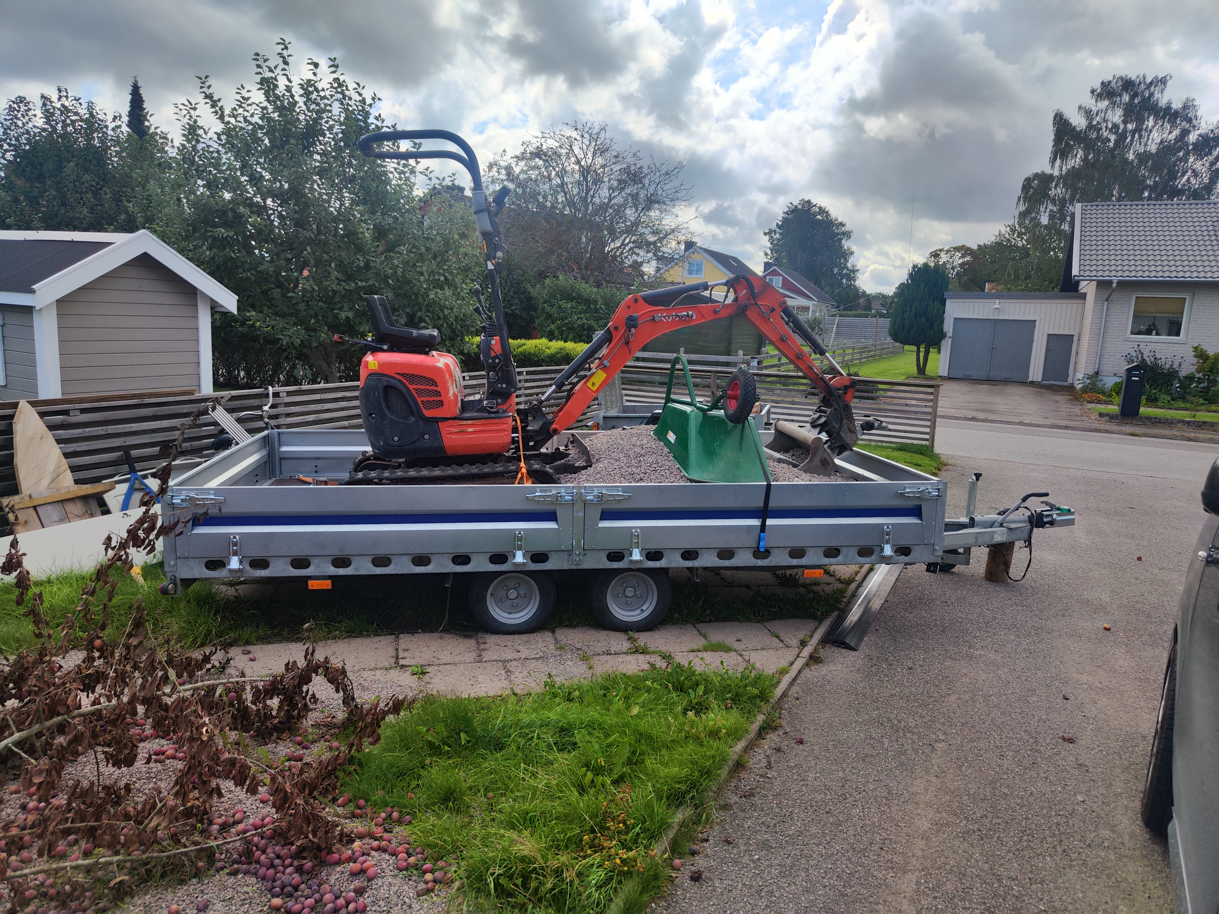 Planerar ni att anlägga en rabatt eller behöver utföra andra schaktarbeten? Vår kompakta grävmaskin tar sig fram även på trånga ytor – med bara 82 cm i bredd når vi platser som annars kan vara svåra att komma åt.